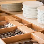 The hotel serves buffet breakfast in the morning.
